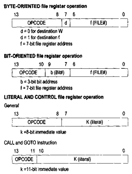 PIC16F87X的35指令可依操作資料類型區分為三類: